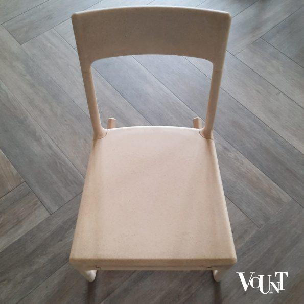Sinds 1995 laat Ikea regelmatig een zogenaamde PS (Post Scriptum) serie designmeubels en -accessoires ontwerpen en produceren, waarbij ook designers van buitenaf worden betrokken. Meestal gaat het om gelimiteerde uitgaven. Deze schommelstoel is in 2005 ontworpen door de Zweedse designer Chris Martin. De stoel is bedoeld is voor gebruik aan een tafel en is gemaakt van recyclebare kunststof (composiet van houtvezels met polypropyleen). In afwijking van de meeste Ikea bouwpakketten, is deze stoel in elkaar gezet zonder gebruik van gereedschap. De stoel is in het blauw, beige en zwart geproduceerd, waarbij de blauwe en beige kleur het minst voorkomen. Leuke bijkomstigheid van de beige kleur is dat de verwerkte houtvezels zichtbaar zijn. In goede conditie.
