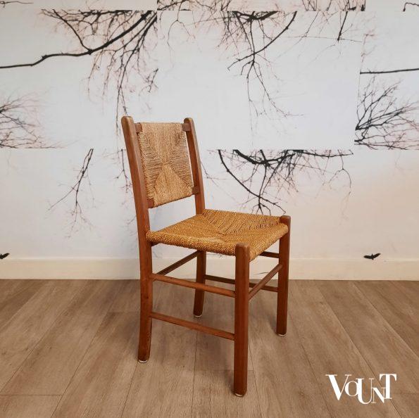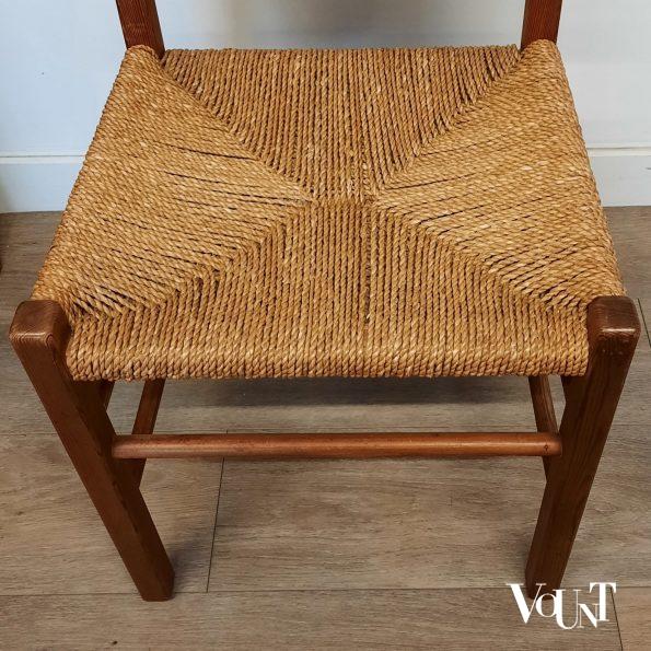 Set van 2 grenen houten stoelen met touwzitting en -rugleuning, jaren ’60