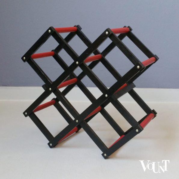 Deze vintage houten wijnrekjes in rood en zwart zijn licht en nemen weinig ruimte in en als je ze even niet nodig hebt, zijn ze zo ingeklapt.