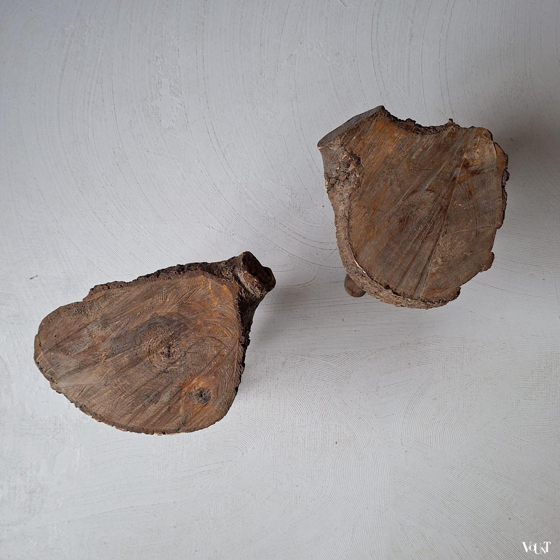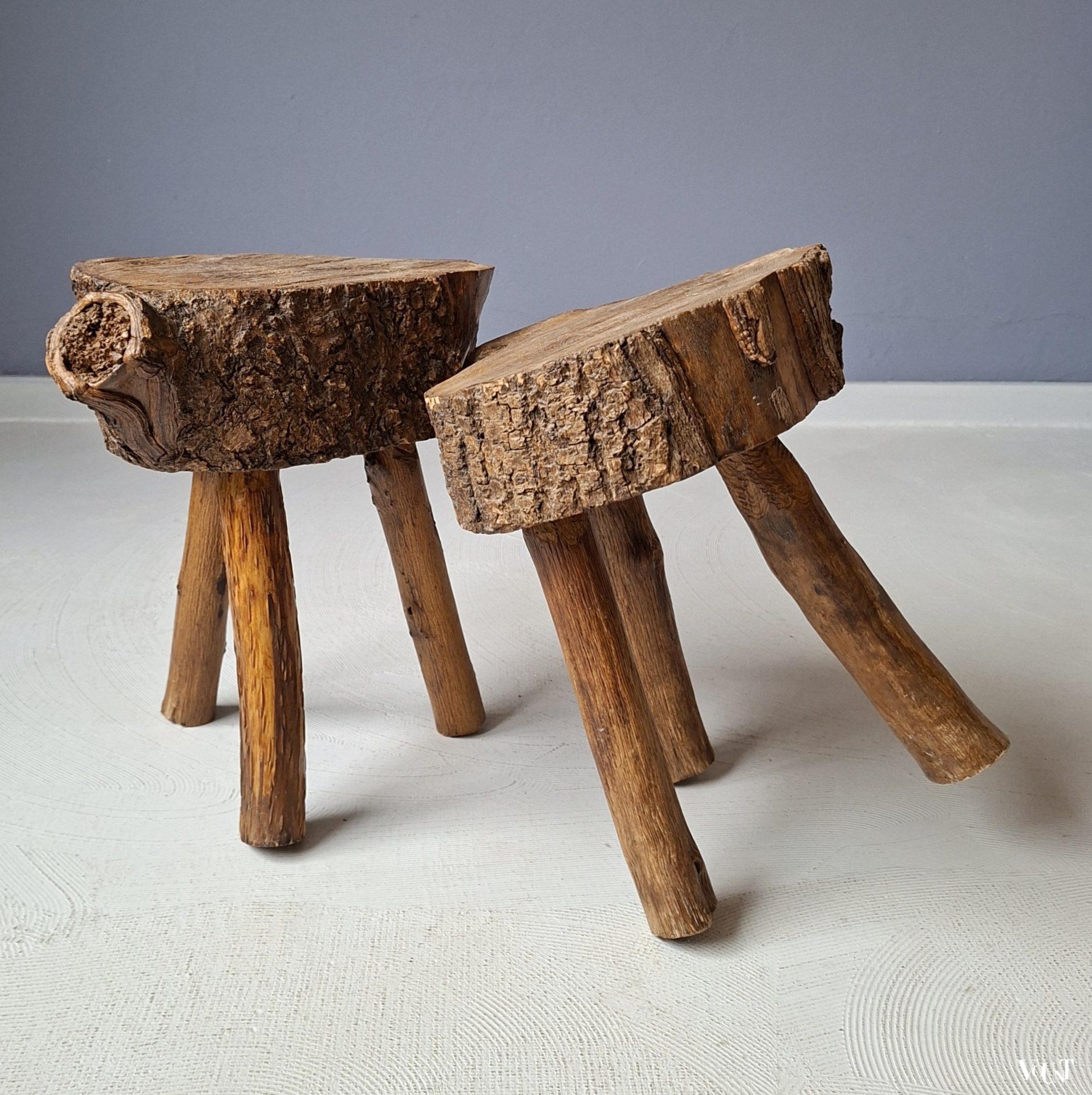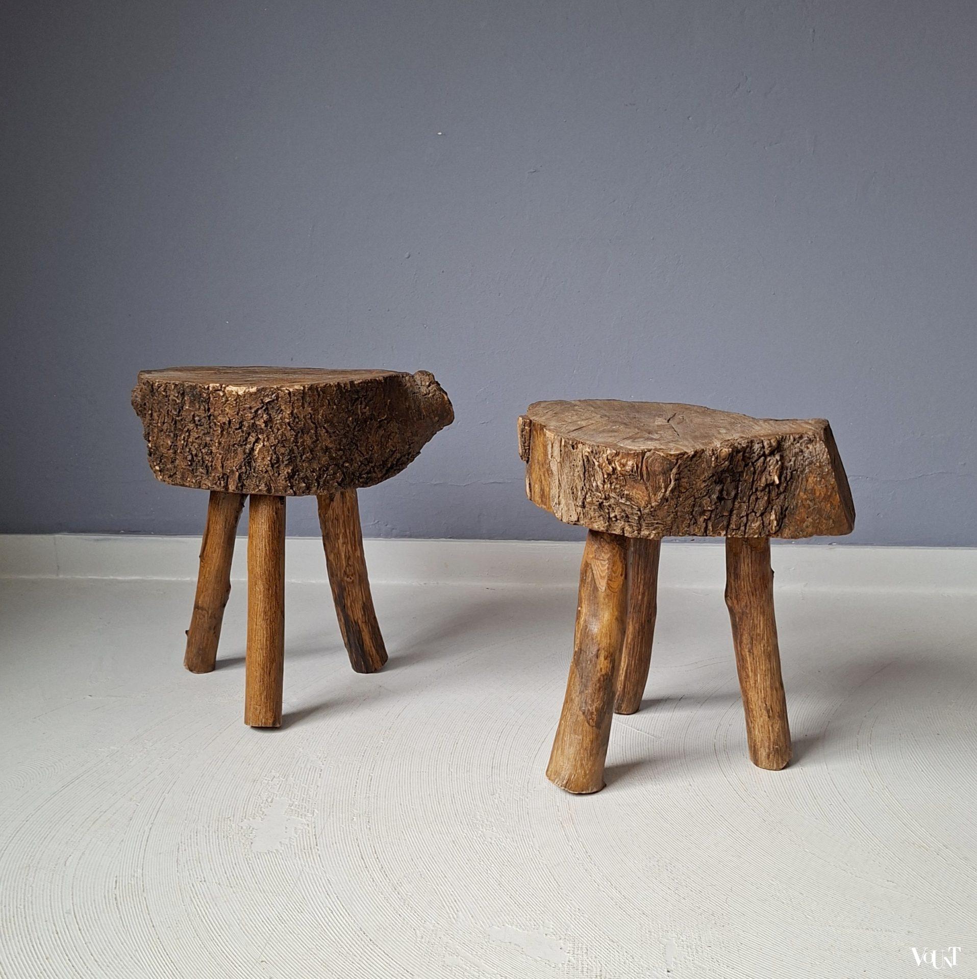Set van 2 oude Franse boomstamtafeltjes/-krukjes