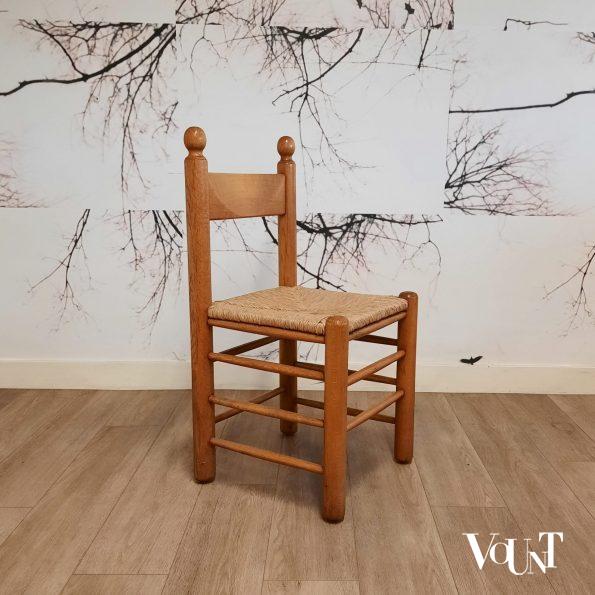 Set van 4 brutalist stoelen hout met biezen, jaren ’70