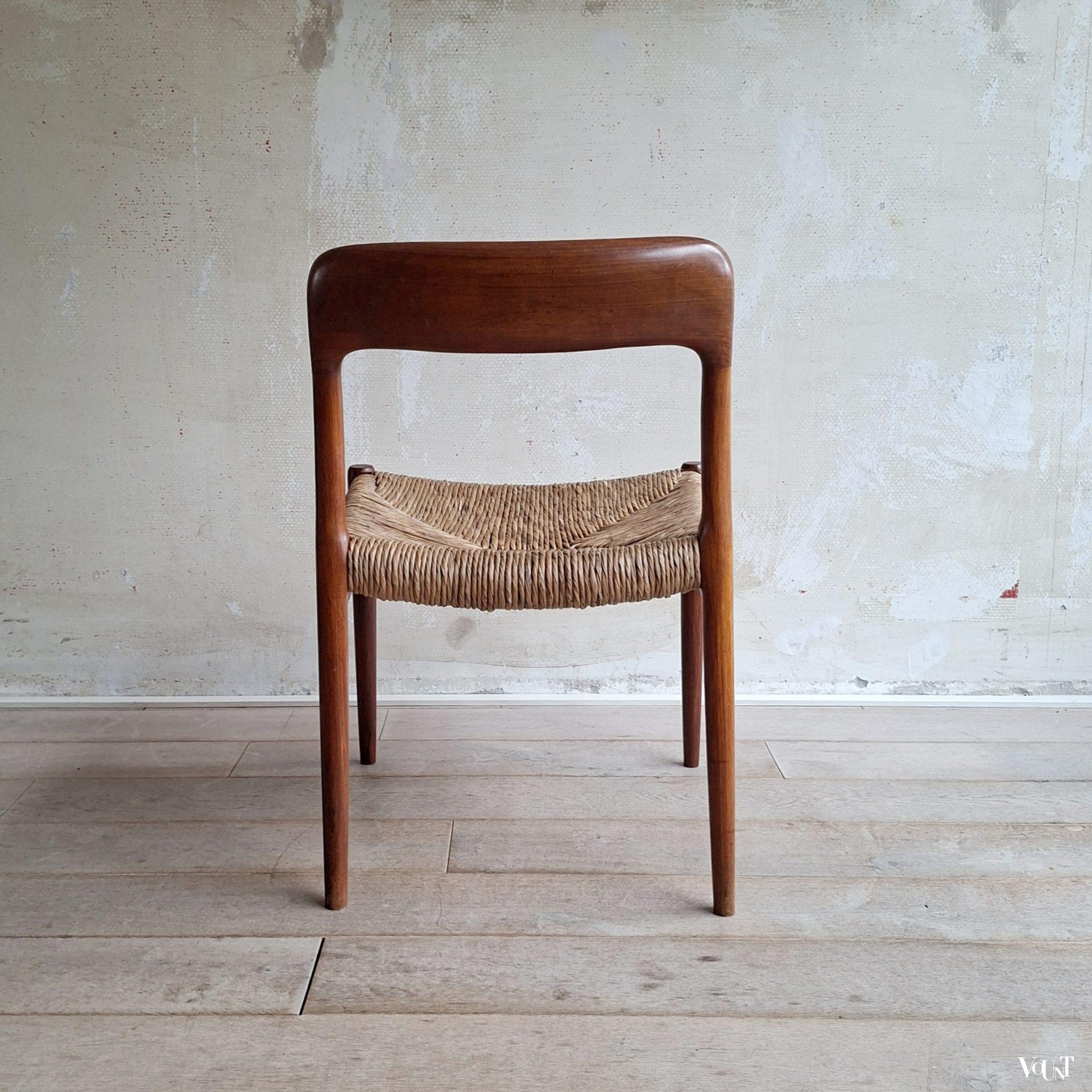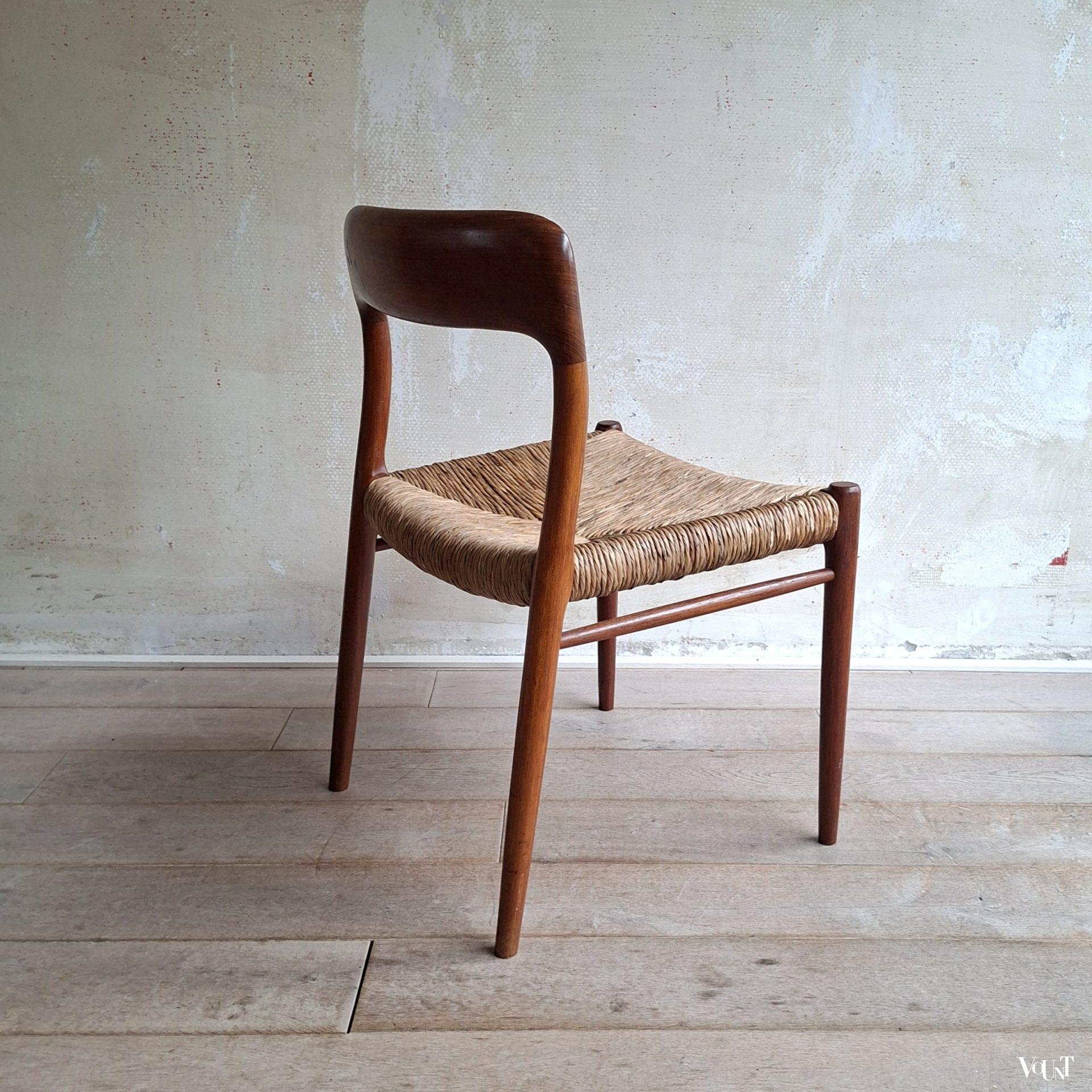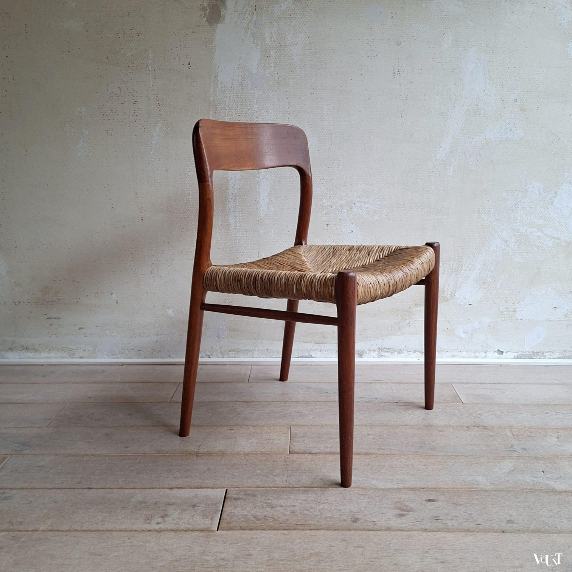 Stoel model 75 werd in 1954 ontworpen door Niels Otto Möller (1920-1982) voor het door hem in 1944 in Aarhus (Denemarken) opgerichte bedrijf J.L. Møllers Møbelfabrik, dat tot op heden actief is. Dit model wordt nog steeds geproduceerd: in eikenhout gecombineerd met papercord. Zie ook de website van J.L. Møller: jlm.dk.