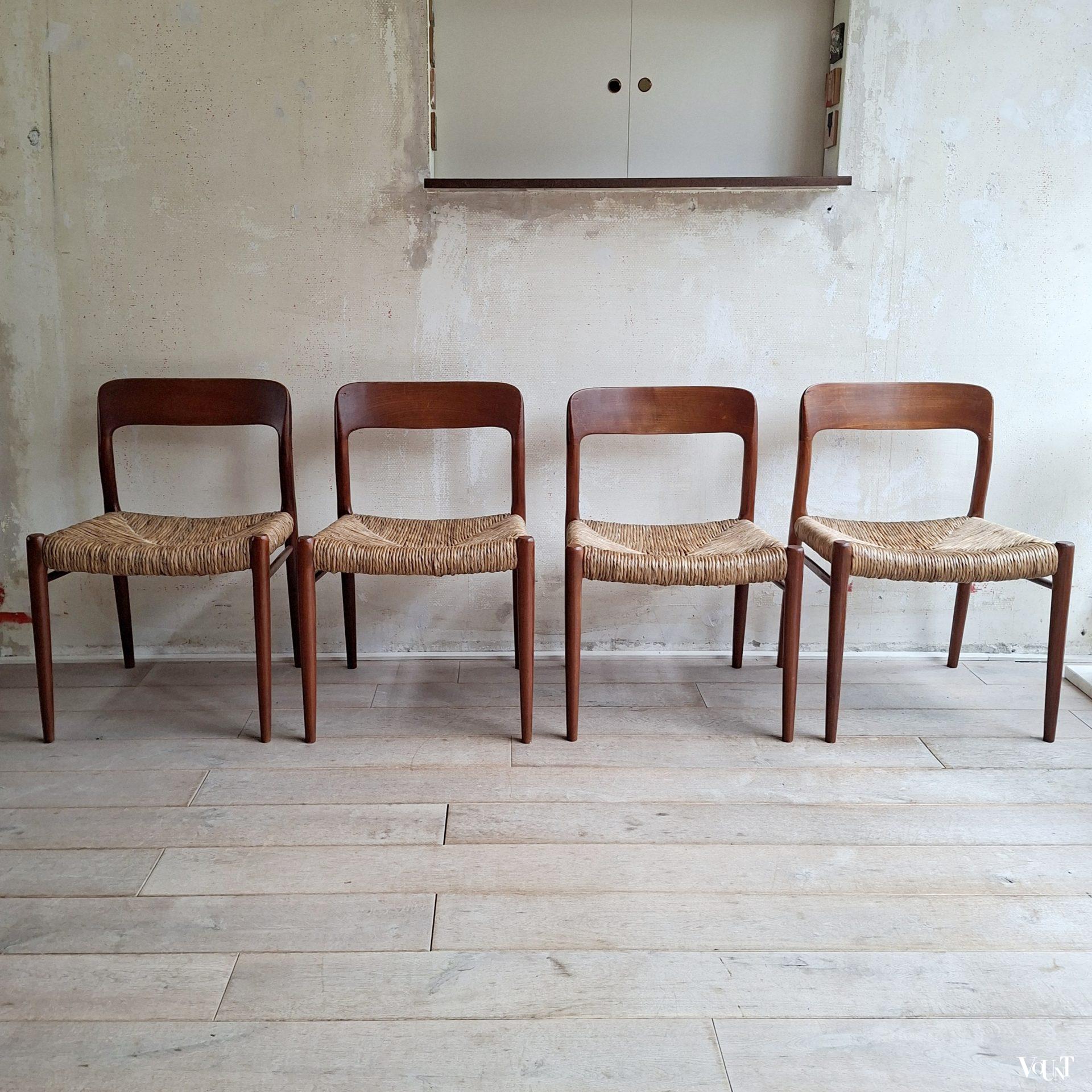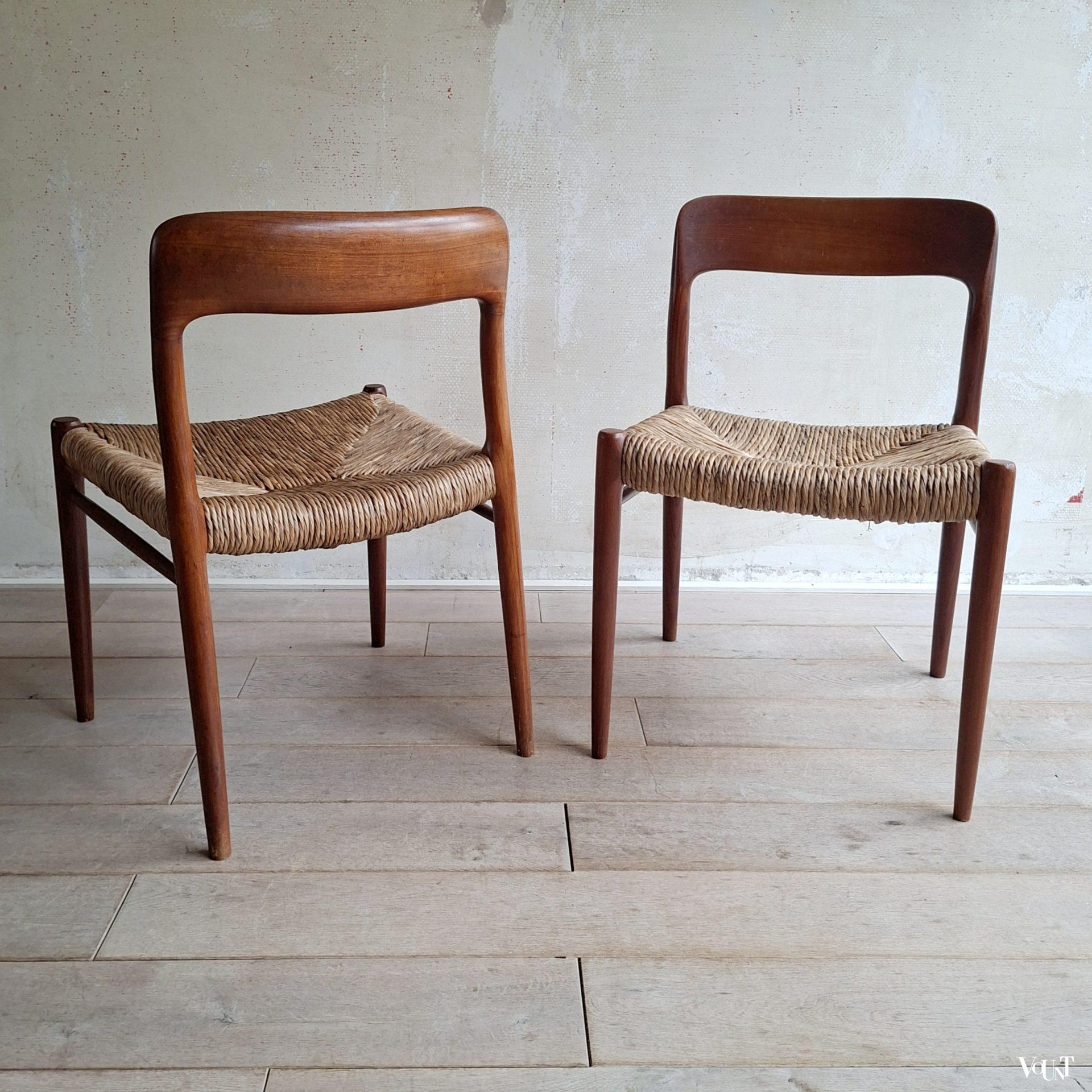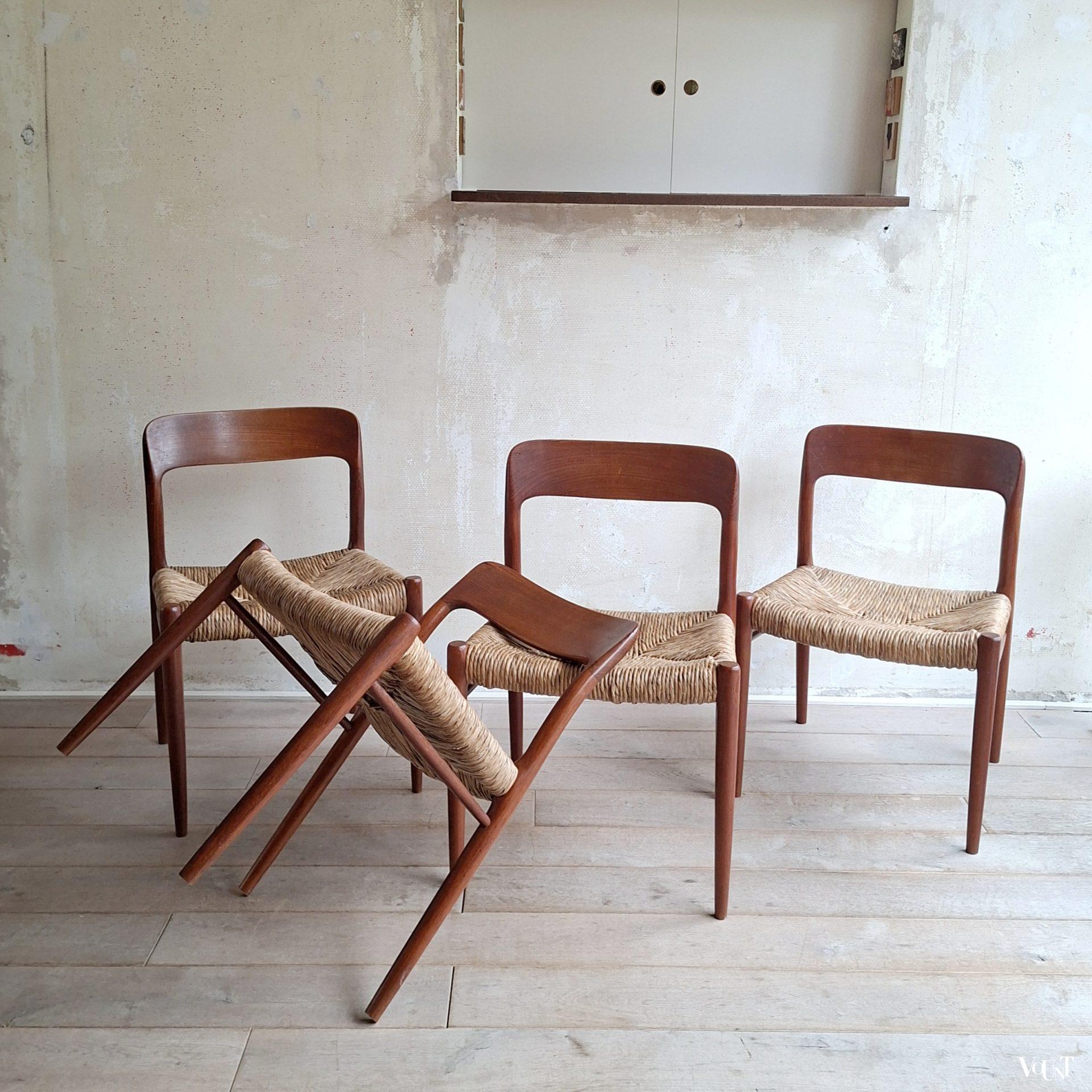Stoel model 75 werd in 1954 ontworpen door Niels Otto Möller (1920-1982) voor het door hem in 1944 in Aarhus (Denemarken) opgerichte bedrijf J.L. Møllers Møbelfabrik, dat tot op heden actief is. Dit model wordt nog steeds geproduceerd: in eikenhout gecombineerd met papercord. Zie ook de website van J.L. Møller: jlm.dk.