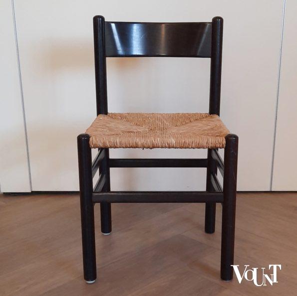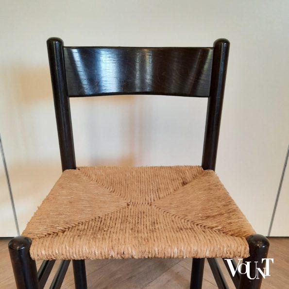 Set van 4 zwarte eettafelstoelen met biezen zittingen, jaren ’60/’70