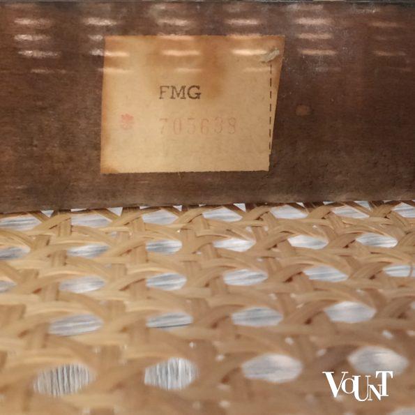 Het ontwerp van deze Praag of 811 stoel is van de Oostenrijker Josef Hoffmann, die de stoel in de jaren ’20 heeft ontworpen voor Thonet. Tijdloos design: de stoel was zowel in de jaren ’30 als in de jaren ’50/’60 populair (onder anderen onder architecten), en is ook nu weer erg gewild. Deze set stoelen is in de jaren ’60 geproduceerd door FMG (voormalige na W.O. II genationaliseerde Thonet-fabriek in Polen).  Het hout en de handgeweven rotan webbing van de stoelen verkeren in goede conditie.