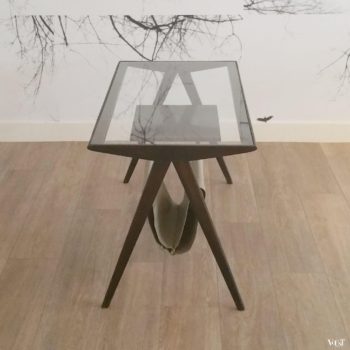Wij zijn er (nog) niet achter waar de antieke houten bok uit Frankrijk, die het onderstel vormt van deze sidetable, oorspronkelijk voor heeft gediend. Het is in ieder geval een bijzonder industrieel item. Wij hebben de bok voorzien van een dikke glasplaat waardoor de bok volledig zichtbaar blijft en het een uniek interieuritem is. Mooi stabiel meubel.