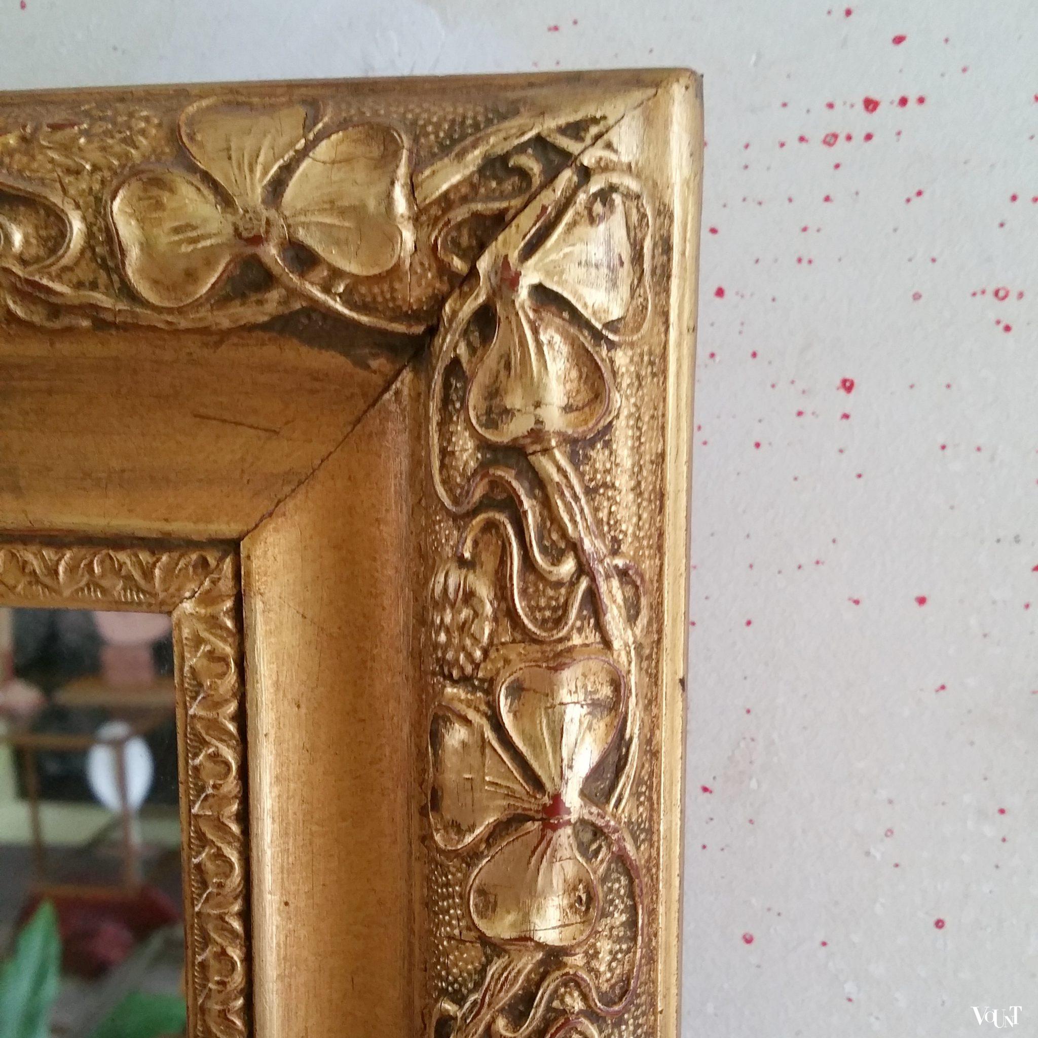 Spiegel in gouden lijst met klavermotief, jaren ’60/’70