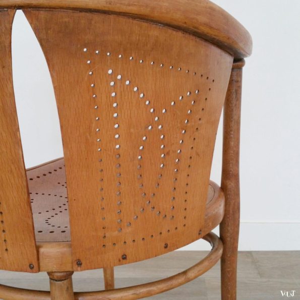 Deze Thonet-bureaustoel nr. 1 (Schreibtischfauteuil Nr. 1) is afgebeeld in de Thonet-catalogus van 1904. De stoel werd ontworpen en geproduceerd door Gebrüder Thonet (Wenen) en werd rond 1885 voor het eerst op de markt gebracht. Het Thonet-label onder de zitting was in gebruik tussen 1886 en 1921. In goede staat. Een dergelijke stoel kom je niet vaak meer tegen.