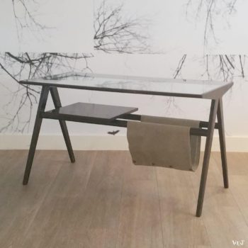 Dit unieke kamerscherm is gemaakt van beschilderde houten panelen. Opvallend zijn de gebruikte kleuren die er qua combinatie uitspringen. Aan beide zijden beschilderd. Doet aan jaren ’50 modernisme denken. In goede conditie. Voor de leeftijd normale gebruikssporen.