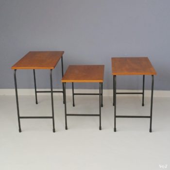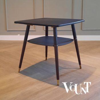 Deze uit Duitsland afkomstige trolley heeft een houten heel donkerbruin (tegen het zwart aan) gebeitst frame. Met flessenhouder. Het bovenblad is afneembaar. Wielen metaal en rubber. Voor buitengebruik gemaakt, maar natuurlijk ook binnen goed te gebruiken. Geproduceerd door het Duitse bedrijf Herlag. In goede staat.