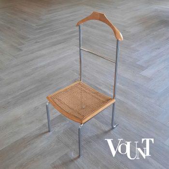 Ze zijn weer helemaal terug van weggeweest: de houten krukjes en krukken met biezen zitting, maar dan wel zo eenvoudig mogelijk. Deze kruk met rood houten frame is in goede staat en heeft slechts geringe gebruikssporen. Gewoon leuk als reservestoeltje of om een lege hoek te vullen.