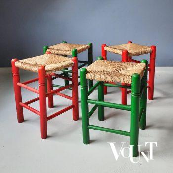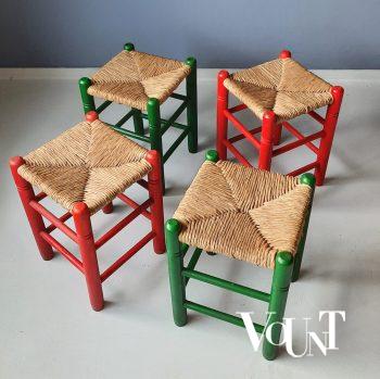 Mocht je zo’n stoel hebben, dan staat dit voetenbankje goed bij de bijbehorende stoel van hout en touw uit de jaren ’60/’70. Zie de laatste foto. (Helaas hebben wij deze stoel niet meer op voorraad). Niet voor je voeten? Ook heel geschikt voor naast je stoel of bed om er je boek of tijdschriften op te leggen. In goede conditie.