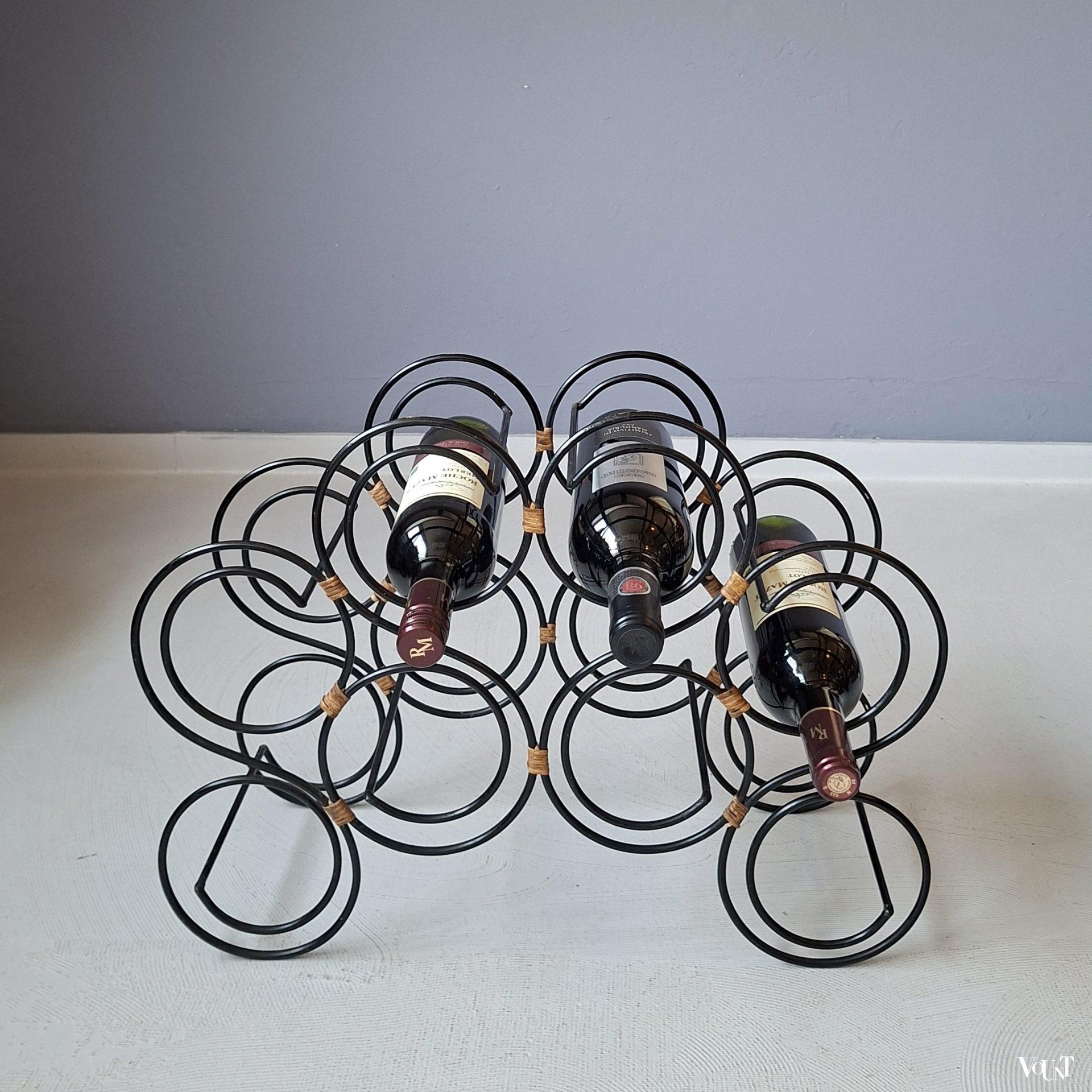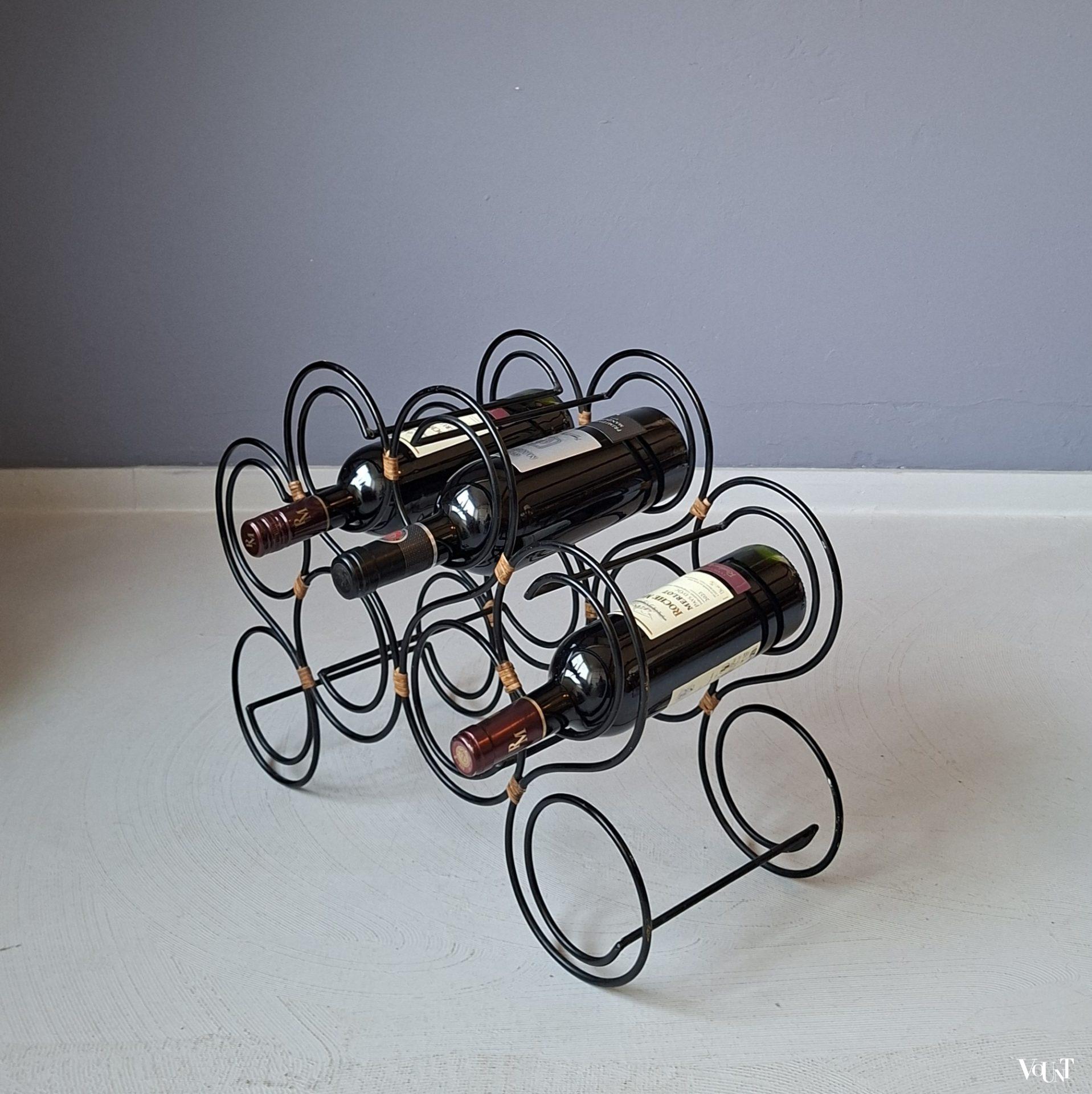Zwart stafstalen wijnrek, jaren ’70/’80