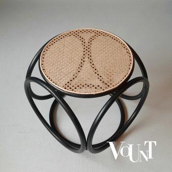 Zwarte kruk met houten ringen en rotan webbing, jaren ’70