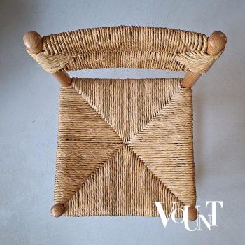 Houten stoel met biezen zitting en rugleuning, jaren ’60